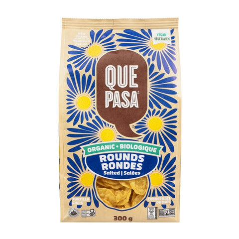 - Simple, Real Ingredients: Indulge in guilt-free snacking with Que Pasa Organic Salted Rounds. These chips are a healthier alternative to conventional tortilla chips made with certified organic, non-GMO ingredients and seasoned with salt.