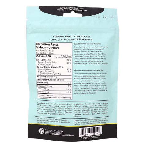 These decadent bites combine the rich, full-bodied flavour of Ross's dark chocolate with the delightful crunch of California almonds. The secret? Sweetened with stevia, making them keto-friendly and perfect for those watching their sugar intake. Each bite delivers a burst of flavour and a satisfying crunch, curbing your sweet tooth without derailing your health goals.