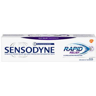 Keep your smile bright and clean with this Sensodyne Rapid Relief mint toothpaste. The unique formula creates a layer of protection over exposed dentin to help prevent pain and discomfort. Stannous fluoride works to relieve sensitivity quickly for fast results. This toothpaste for sensitive teeth boasts a brisk mint flavour to leave your mouth feeling cleaner while freshening your breath. With tooth-whitening and stain-fighting properties, this Sensodyne Rapid Relief mint toothpaste helps your teeth look their best.