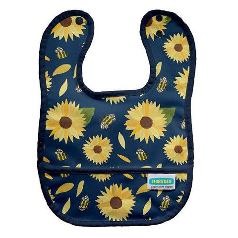 Thirsties Pocket Bib - Moon Blossom has made cleanup simple with this easy-to-clean. It features two adjustable snap settings and a handy crumb catcher. Thirsties Pocket Bib is made with waterproof PUL, backed with white mesh, and trimmed with matching binding.