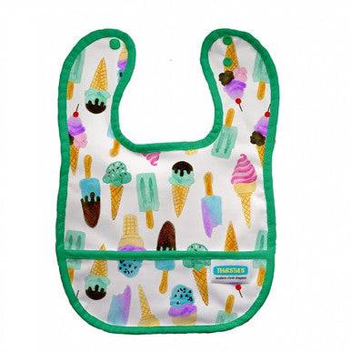 Thirsties Pocket Bib - We All Scream has made cleanup simple with this easy-to-clean. It features two adjustable snap settings and a handy crumb catcher. Thirsties Pocket Bib is made with waterproof PUL, backed with white mesh, and trimmed with matching binding.