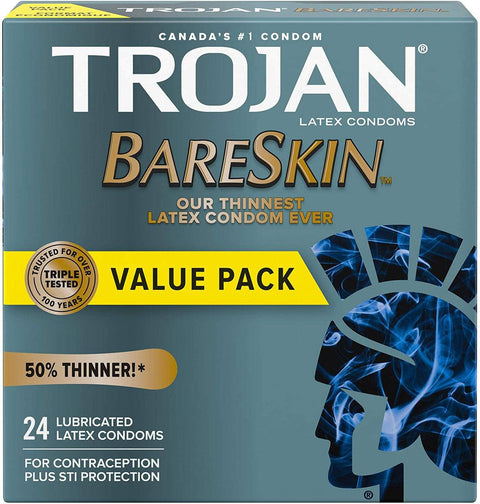 Trojan BareSkin Lubricated Condoms are over 40% THINNER than their standard condoms for a more natural feel. No other Trojan Condom gets you this close.