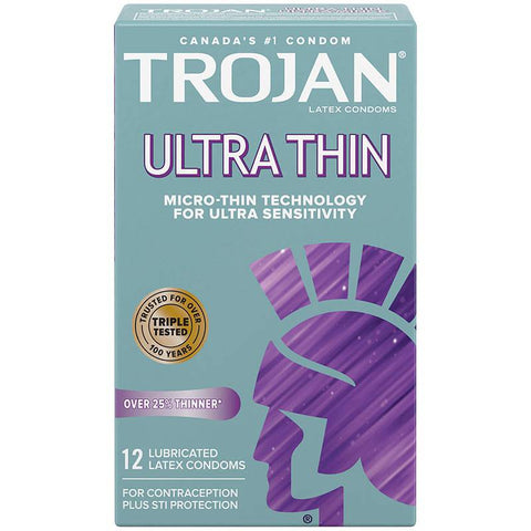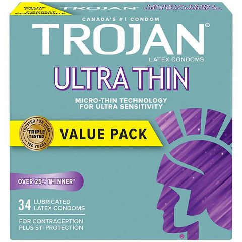 Trojan Ultra Thin Lubricated Condoms are thinner than standard TROJAN Latex Condoms – designed for a more natural feeling.