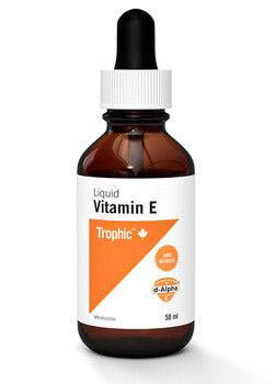 Vitamin E is an antioxidant for the maintenance of good health.* In nature, Vitamin E is a complex of compounds referred to as tocopherols.* The most active is d-alpha tocopherol.* Vitamin E is vital to ensure the proper function of the circulatory, nervous, digestive, eliminatory and respiratory system as it maintains the integrity of cell-membranes.* It helps minimize scarring and assists in the healing of wounds.* Trophic Vitamin E Liquid can be used internally as a dietary supplement or externally as a skin conditioner and healing agent for cuts, burns and sores.*